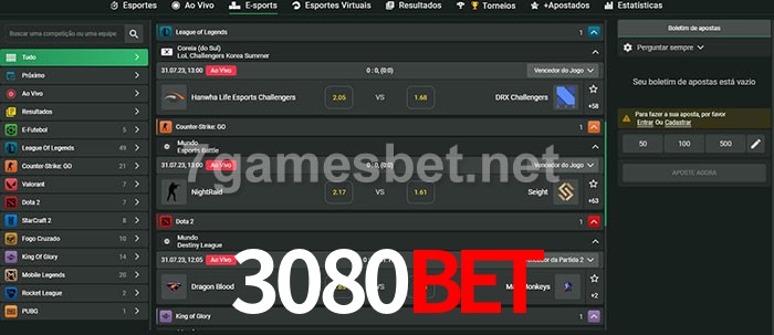 A aposta 3080bet oferece aos jogadores a experiência mais conveniente de apostas em eSports!